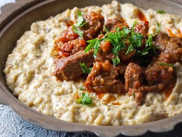 Slow-cooked lamb shank with vegetables and spices, offering a melt-in-your-mouth experience. Braising meat has been a cooking method in Mediterranean kitchens for centuries, ensuring tender and flavorful results.