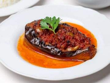 A traditional Turkish dish of eggplants stuffed with ground beef, onions, tomatoes, and spices. This flavorful dish, whose name means "split belly," has been a favorite in Turkish cuisine for generations.