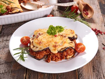 A baked dish with layers of eggplant, tomato sauce, and béchamel sauce. Originating from the Eastern Mediterranean, Moussaka has been a staple in Greek and Turkish cuisines for centuries.