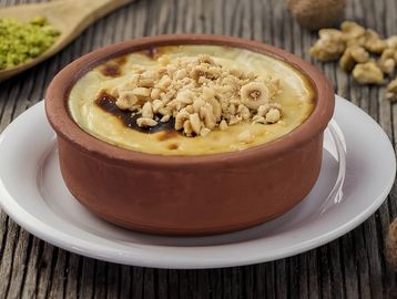 A traditional rice pudding from the Hamsiköy region, known for its creamy texture and rich flavor, topped with a sprinkle of hazelnut.